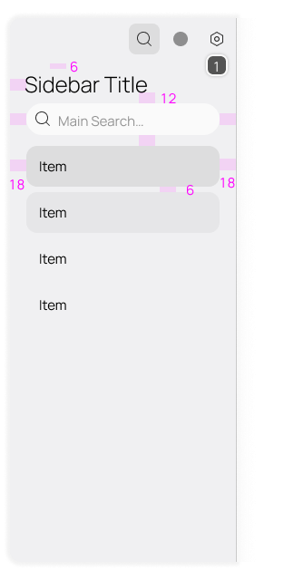 • Elements on the sidebar have 18dp spacing on the sides.